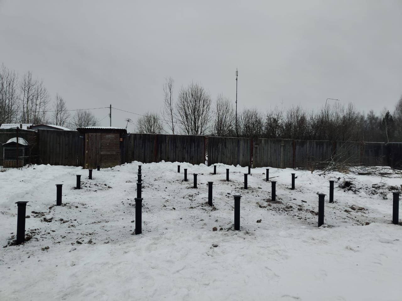 Закрутили 25 винтовых свай для строительства дома 8х8м в зимний период